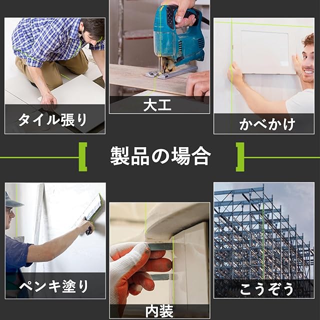 【豊かな付属品】グリーンレーザー墨出し器本体*1、磁気「L」ベース*1、ミニ三脚ベース*1、四角ベース*1、バッテリー*2、リモコン*1、レーザーターゲットプレート*1、ポータブルバッグ*1、充電ケーブル*1、ユーザーマニュアル*1。商品重さ:340g、小さいだけでなく、操作も簡単です。プロでも家庭でも広範囲に使えます。
