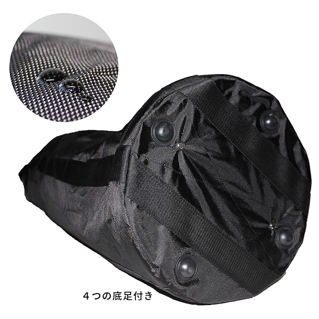 ボディの裏面がターポリンで、表面はがオックスフォードです、防水性、柔軟性、靱性に優れ、洗濯しやすい、乾きしやすいです。内張りの接合部分を二重に縫製してあります、縫製が鋭利な物で切れた場合でも、一気に接合部分が裂けることを防ぎます。