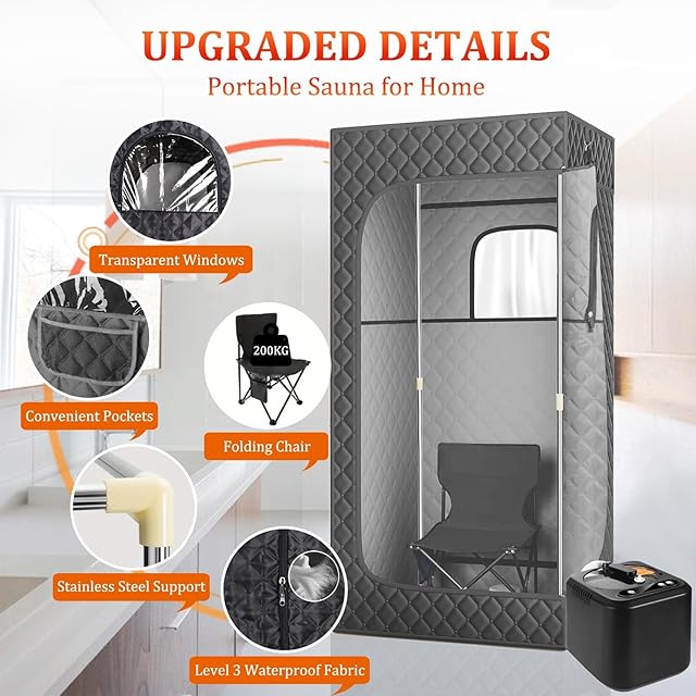 【家庭用サウナ - 簡単に組み立て、はい!】:ツールや複雑な手順は必要なく、家庭用サウナの設置は簡単な数ステップで10分以内に完了できます。どの部屋でも簡単にスチームサウナをセットアップでき、家庭用としても旅行用としても便利なスパ体験を提供します。
