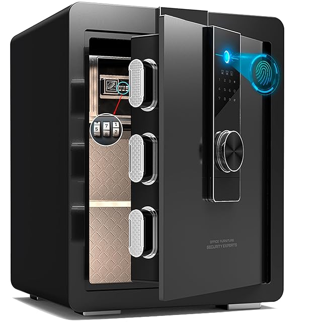GIRGBE【強化版】超大 家庭用 指紋認証 暗証番号 52L 金庫 床・壁に固定可能 盗難防止 警報アラーム 保险柜 業務用/事務所/ホテル/店用/旅館 防犯金庫 A4 ファイル/宝石/貴重品/現金 保险箱 日本語取扱説明書付 ブラック 家庭用人気 safe (ブラック, 52L)