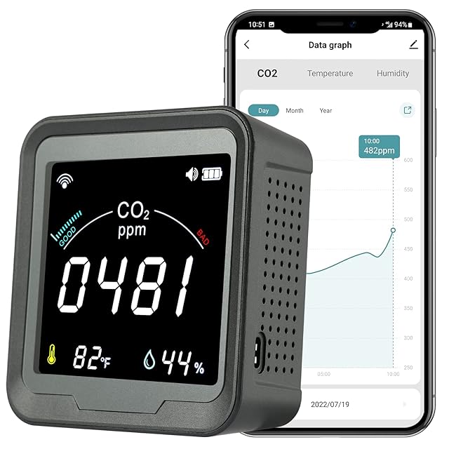 【スマート空気品質モニター】 LSENLTY 3 in 1 CO2 モニターは、すべての基本機能 (CO2、温度および温度計湿度計モニター) だけでなく、リモート監視、CO2 濃度、温度および湿度グラフなどのスマート機能もサポートしています。 当社の屋内 CO2 検出器は、信頼性が高く、家庭、温室などで使いやすいです。