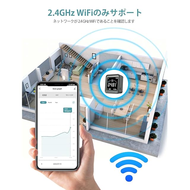 LSENLTY WiFi 高精度 スマートco2モニター co2センサー 3in1アプリ連携 二酸化炭素濃度測定器 二酸化炭素濃度計 温度 湿度測定機能付き 400-5000PPM測定範囲 警報アラーム co2 測定器 NDIR方式 充電式 大容量電池内蔵 卓上型 (2.4G WiFiのみサポート)