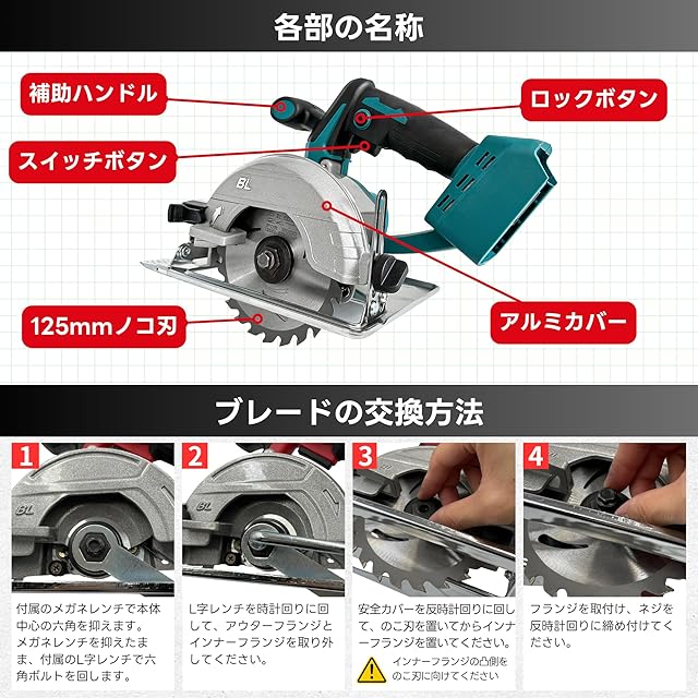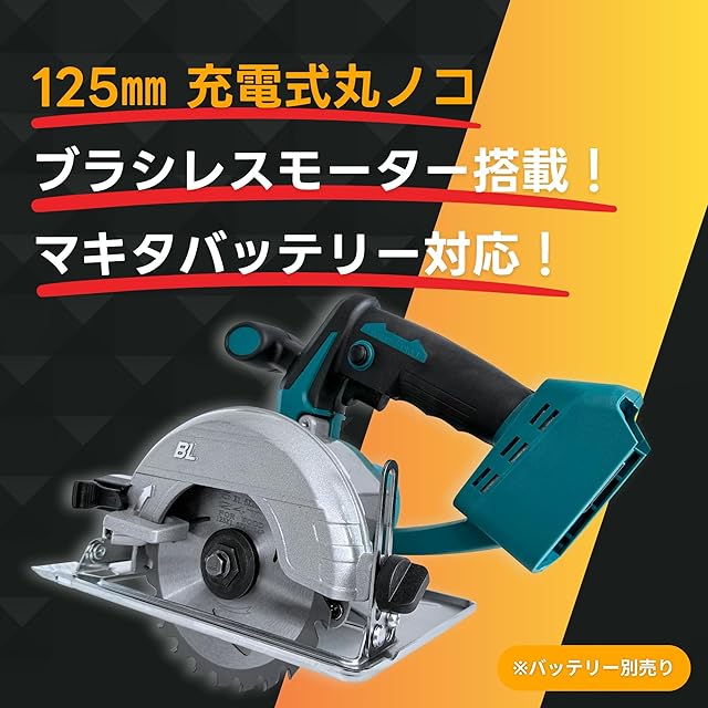 大宝堂 マキタ互換品 丸のこ まるのこ 丸ノコ マルノコ 丸鋸 電動工具 ブラシレス のこぎり 電気のこぎり 電ノコ 電鋸 チップソー 電動工具 長続航 木材 合板 コードレス 電動 刃 刃外径125mm 互換 18V 14.4V 充電式 18ボルト 14.4ボルト コードレス DIY ※ バッテリー 充電器 別売り(125mm) (本体単品(ブルー))