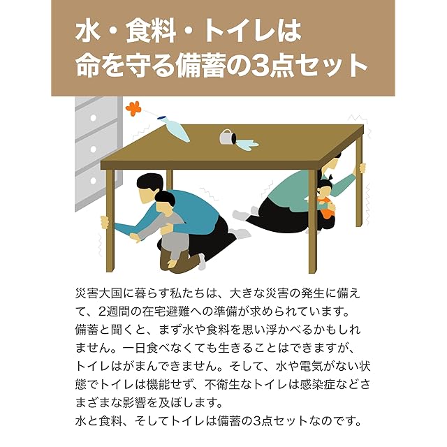 排泄後に本体のレバーを引いて10秒待てば、熱の力で排泄物を圧着・密封!汚物袋に直接手を触れずに処理が可能な災害用トイレです。