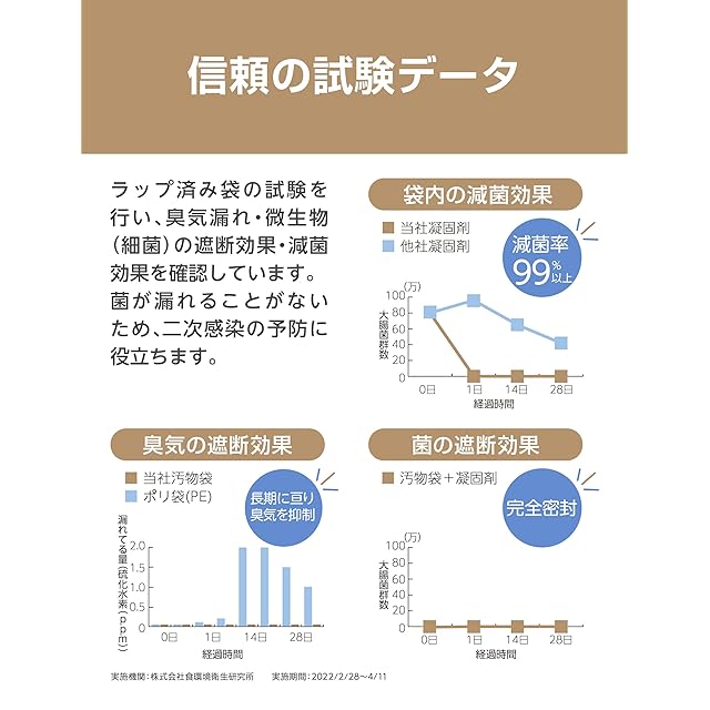 汚物袋の素材は【驚異の防臭素材BOS】を使用。排泄物の臭いや菌を強力に漏らしません。