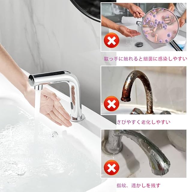 モダン設計: モダンでスタイリッシュなデザインのこのセンサータップは、手洗いやすすぎがしやすい高さで、お年寄りやお子様にも最適です。 また、エレガントなフォルムは、さまざまなインテリアスタイルにマッチします