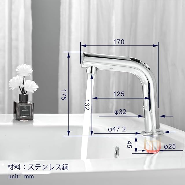 節水・清潔: 単三電池4本(別売)で駆動するセンサータップです。 検知範囲内に手が入るとセンサーが作動し、自動的に水が出ます。手を離すと自動的に水が止まります。節電・節水・細菌感染防止に貢献する、繊細で便利なスマートガイダンスデバイスです
