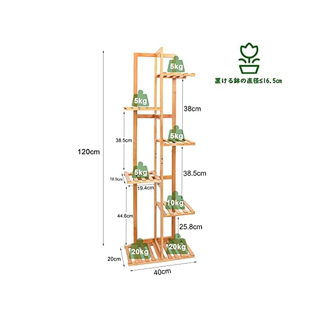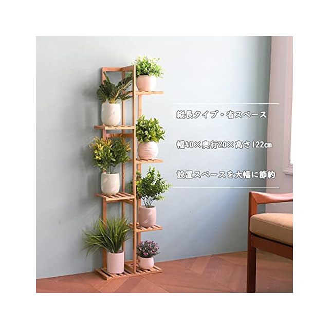 【6段ラック】6段タイプの花台、鉢を置くスペースが7箇所あるので、お好みの花や観葉植物をたっぷり飾れます。植物同士の間隔を十分にに空けられるので、植物の生長をサポートします。