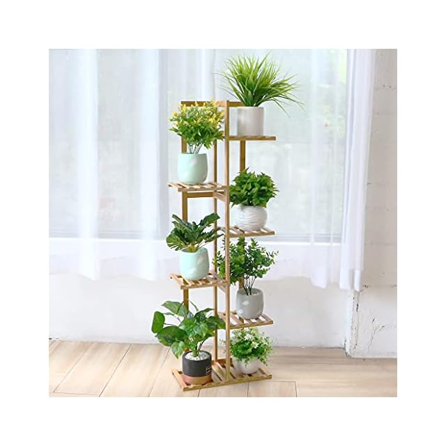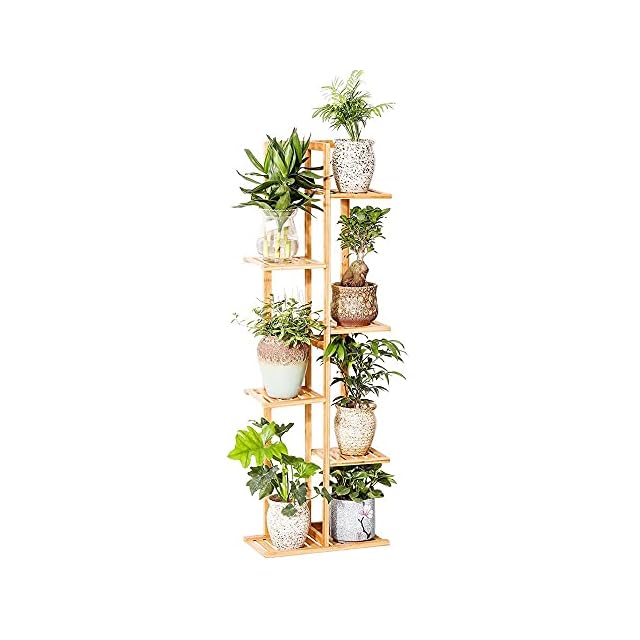 UNHO フラワースタンド フラワーラック 竹製 花台 6段 高い スリム ガーデニング 棚 観葉植物 植木鉢 鉢 盆栽 台 室内 屋外 ナチュラル おしゃれ 園芸ラック