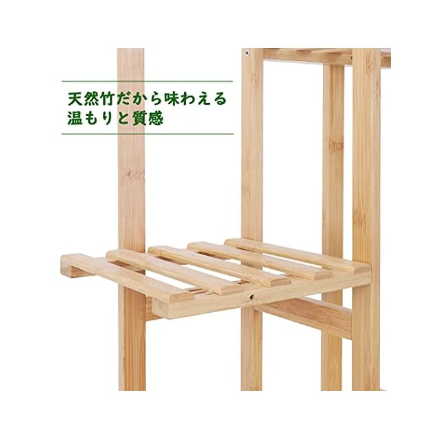 【優れた天然素材】ラック全体は竹で作られ、天然素材ならではの温かさが感じられます。ナチュラルな風合いとシンプルなデザインで、植物を引き立てて、素敵なガーデンスペースを演出します。