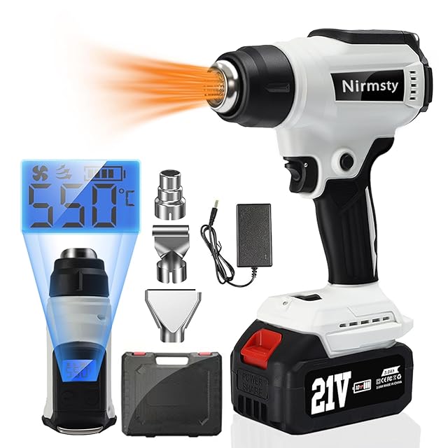 ヒートガン コードレス 小型 充電式 30~550°液晶に温度調整 2段階風速 「LCDディスプレイ・温度表示可能 」マキタバッテリー18V と互換性 ノズル3本付き DIY作業 PVCとレジンの収縮 軟化 塗料の剥離など適用多用途ひ【バッテリーと日本語取扱説明書付き】-白色