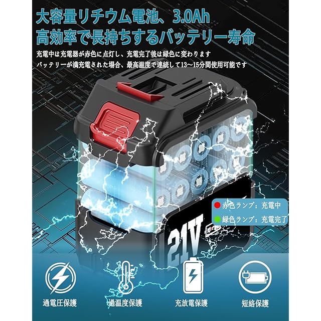 【付属品が充実&品質保証】本製品には、熱風機本体×1、3.0AHバッテリー×1、充電器×1、ノズル×3、日本語取扱説明書×1が付属しています。マキタ18Vリチウムバッテリーに対応しており、例えばBL1830、BL1840、BL1850、BL1860、BL1860B、BL1830B、BL1850B、BL1860B、BL1890Bなどが適用します。 ※ご注意:出荷前に厳格な品質検査を行っておりますが、万が一お手元に届いた商品に欠陥がある場合や使用中に疑問がある場合は、「注文履歴」➡「出品者に連絡する」から弊社ショップにご連絡ください。担当者が24時間以内に返信し、誠心誠意対応させていただきます。【注意:ロック解除ボタンやスイッチを解除後、モーターが5~7秒間運転を続けます。これは安全性を高め、機械的な損傷や摩耗を防ぐための設計ですので、故障ではありません。】