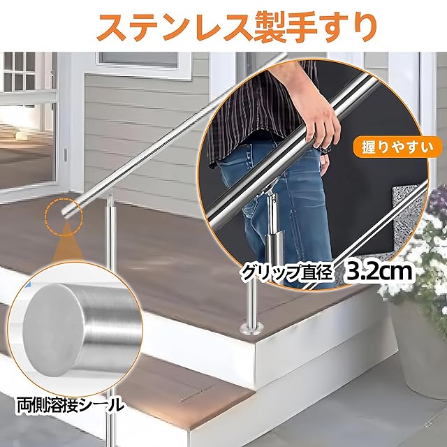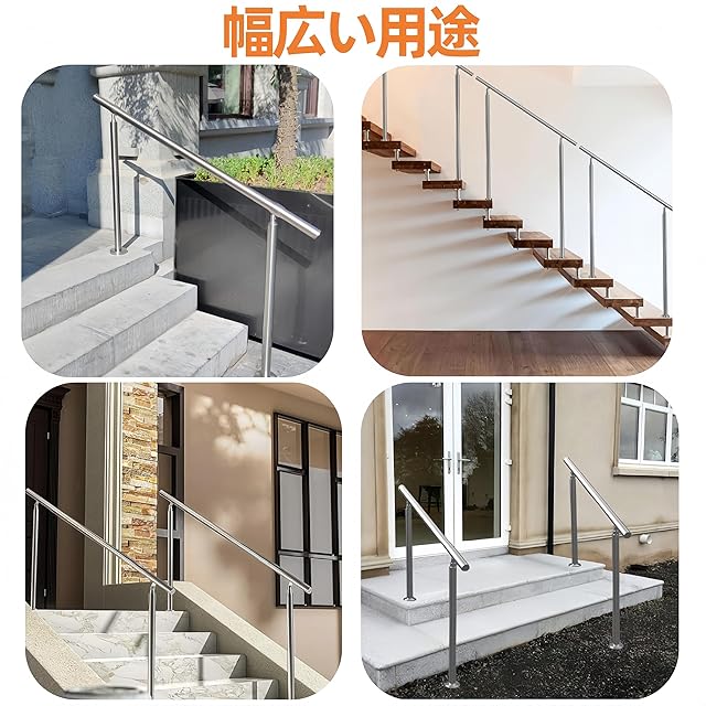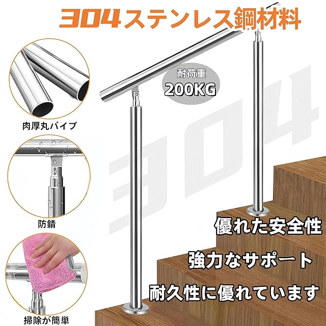 ✨【高品質のステンレス製手すり】304ステンレス鋼素材を使用し、優れた防錆性能を持ち、長期間にわたり美しい外観を保ちます。また、高い耐久性を誇り、過酷な環境でも劣化しにくいため、安心してご使用いただけます。