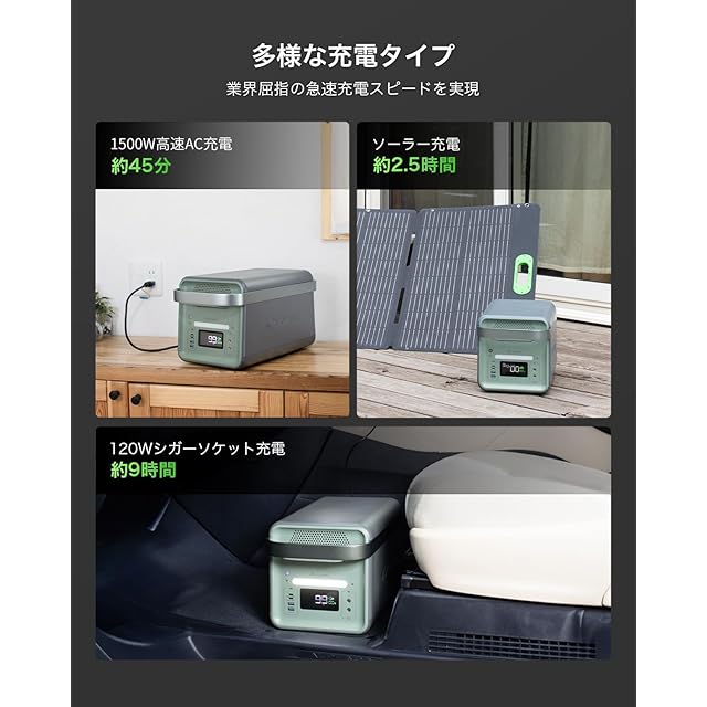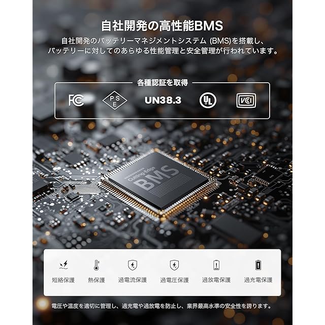 【驚きの充電速度・安全性も向上】YOSHINO(ヨシノ)独自の超急速充電技術によりわずか45分で80%まで充電可能。ソーラーパネルなら2.5時間で80%まで急速充電できます。突然のキャンプやアウトドアの際、ポータブル電源を短時間でフル充電できるのは非常に便利です。さらに、PSE、UN38.3、UL、FCC、EMCなど各種認証を取得しており、過充電や過放電を防止するバッテリーマネージメントシステム(BMS)を搭載していることにより、電圧や温度を適切に管理し、過充電や過放電を防止し、業界最高水準の安全性を誇ります。