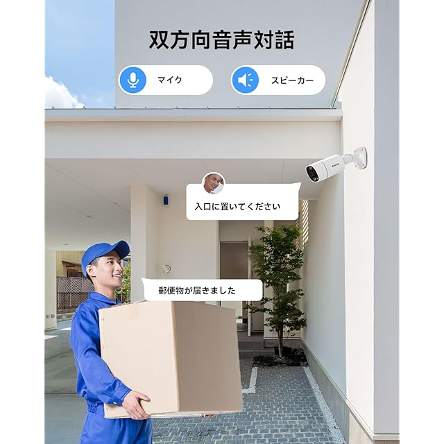 【動体検知・防水防塵・双方向音声・リアルタイム映像】動体検知機能を搭載し、録画内容を最適化。監視中の人物を素早く検索して、関連ビデオを簡単に確認できます。高性能なIP67防水防塵機能を備えており、雨や雪など厳しい環境でも安心して使用できます。最新のP2P技術を採用し、カメラにはマイクとスピーカーが内蔵されており、携帯端末との双方向会話が可能です。さらに、数百回にわたるアルゴリズム調整により、集音問題を解決し、常にクリアな音声を提供します。
