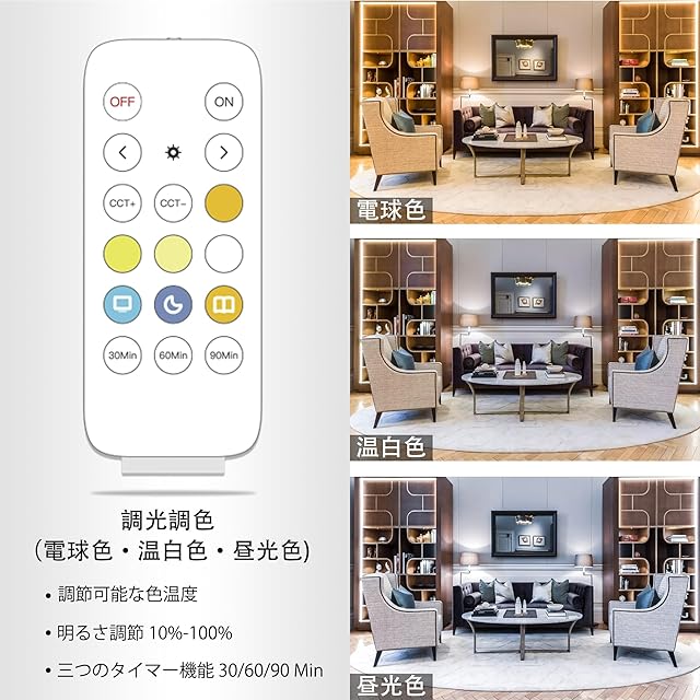 【調光調色COB LEDテープライト】この調整可能な白色光テープライト(2700K〜6500K)は、日中の作業から夜のリラックスまで、1日のさまざまなニーズに完璧に対応します。電球色・温白色・昼光色(2700K/4000K/5000K/6500K)の間で色温を調整でき、理想的な照明効果を提供します。高い色再現指数(CRI > 90)は、色をリアルで鮮やかに保ち、より快適な視覚体験を提供します。