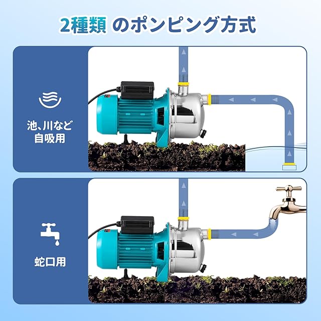 『応用分野が広い』:Poafamx 電動井戸ポンプはをホースに取り付けて、浅い井戸や池、立水から水を排水したり、蛇口や排出パイプに直接接続したりできます。新鮮な水を効率的に供給し、芝生に散水し、庭に散水し、農地に灌漑し、庭をきれいにするのに役立ちます。