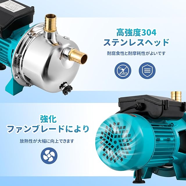 『耐久性がよい』:Poafamx 電動井戸ポンプはステンレス製のポンプヘッドでできており、非常に丈夫で、錆びにくく、耐食性に優れています。鉄製ベースは安定した運転を保証し、冷却ベントデザインは良好な放熱を助長し、耐用年数を延ばすのに役立ちます。ポンプを使用する前に、1/2以上の容量で十分な水を満たす必要があることに注意してください。