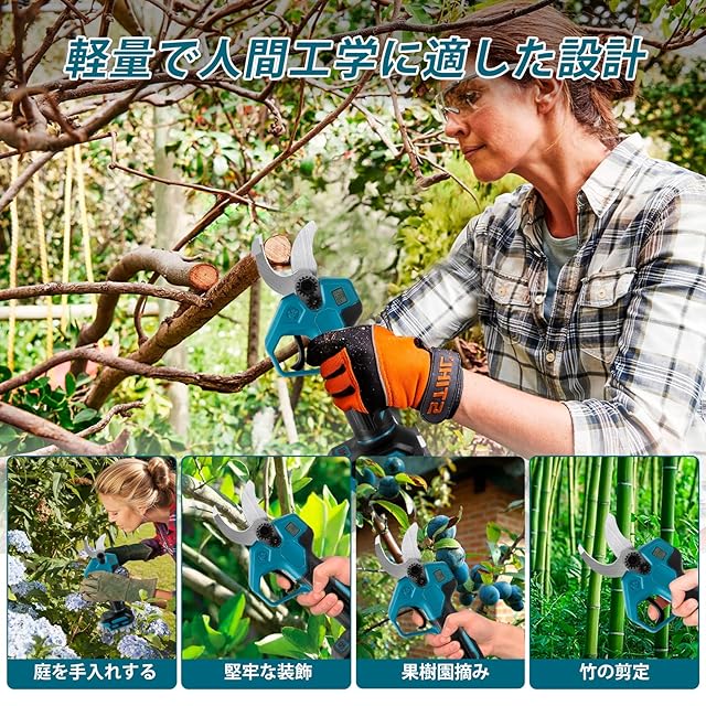 【幅広い適用範囲】この電動剪定ばさみは、生け花や果樹の剪定、庭木の手入れ、ガーデニング、盆栽、植木のお手入れに最適で、園芸用具としてだけでなくDIYツールとしても活用できます。花屋さんにも欠かせないアイテムです。ご家族と一緒に園芸を楽しむことができます。