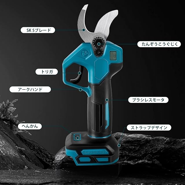 【ブラシレスモーター採用】弊社の電動ハサミはブラシレスモーターを採用しており、より強力で長寿命、速い冷却、そして高い効率を実現しています。さらに、バッテリーには過温度保護や短絡保護など、さまざまな自保護機能が搭載されており、安全性と耐久性にも優れています。