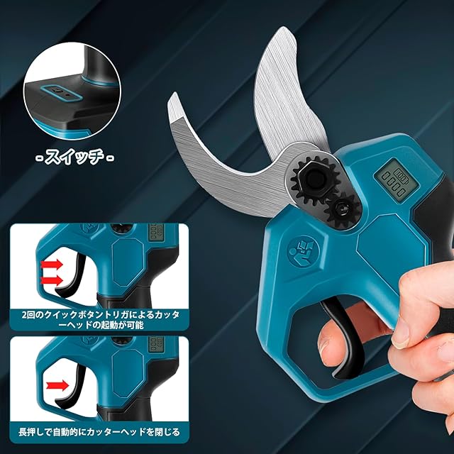 Ceritica 充電式剪定ばさみ 電動剪定バサミ 電動ハサミ ブラシレスモーター 切断直径30mm 2段階開き角度調整可能 マキタ 18Vバッテリー対応 LEDディスプレイ搭載 庭木 果樹用 剪定鋏 園芸用剪定用具【本体のみ・バッテリーと充電器別売】