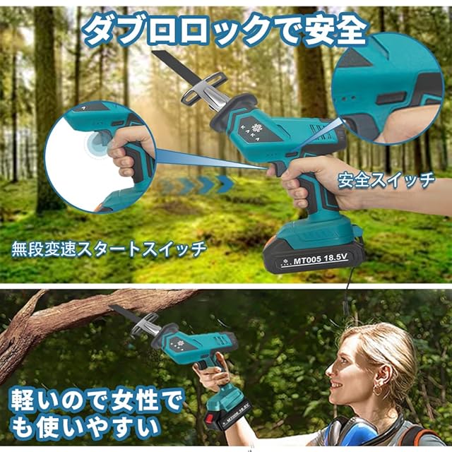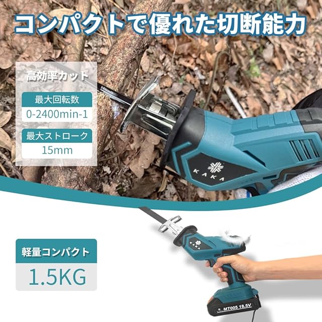 コードレス式:軽量設計のため、コードが邪魔になる心配がなく、片手で持つことができます。 庭木の剪定、薪割り、家庭用粗大ゴミの処理など、どんな場面でも扱いやすい。 軽量なので、長時間使用しても疲れませんでした。