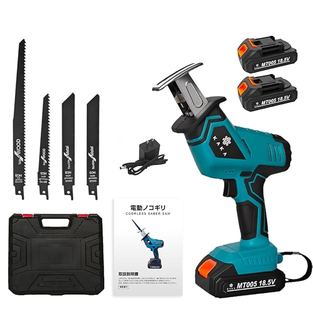 【Hagure Muton】レシプロソー 電動ノコギリ 充電式 無段変速 充電式 小型 軽量 気電のこぎり ノコギリ バッテリー付き 替刃4本 家庭用 木材切断 金属切断 収納ケース 付き (バッテリー2個付き)
