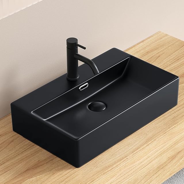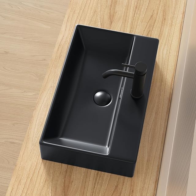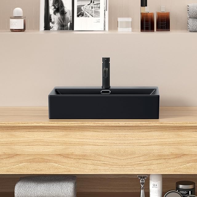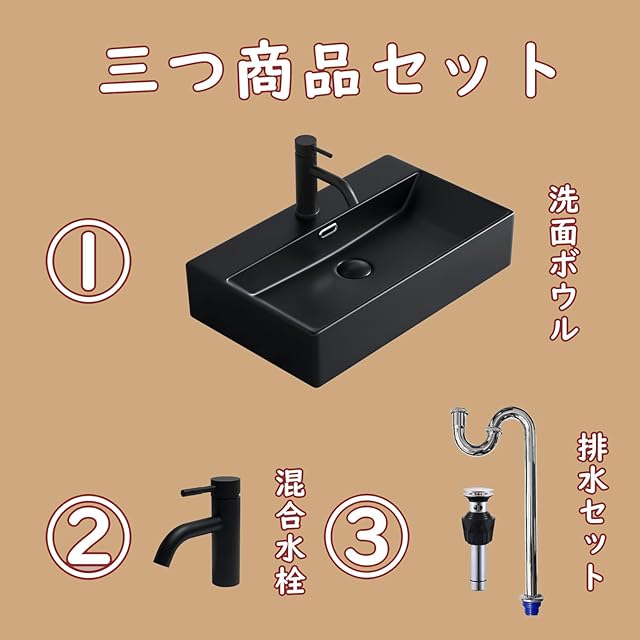 【高級Sトラップセット付き】 ブラック 洗面ボウル 置き型 605*360*130mm 洗面台 大型 おしゃれ 洗面ボール 陶器 手洗いボウル 蛇口セット (長方形)