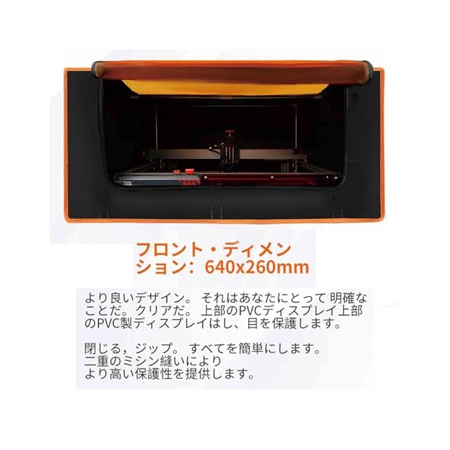 【構造設計】フレームはアルミニウム製で、プラスチック製のコネクターが付いており、軽量で移動しやすく、組み立てやすく使いやすい。両サイドのベルクロストラップでフレームにしっかりと固定できます。前面と上面の2つの覗き窓は一体型で、ダブルジッパーを装備。ハウジングは底がなく、レーザー彫刻機の上に簡単に置くことができ、収納も簡単です。