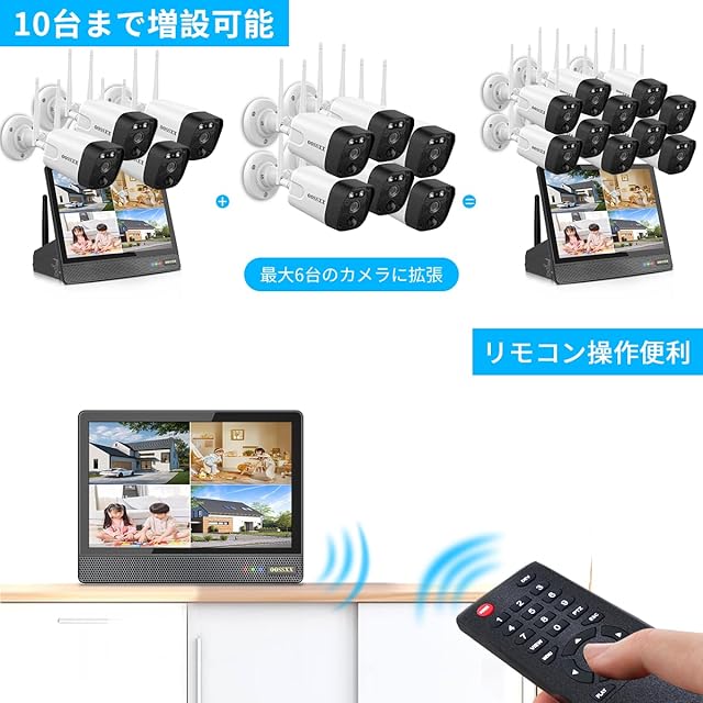 【双方向通話・ダブルアンテナ信号強化・130° 超広角】 ワイヤレス 屋外 監視カメラ ワイヤレス 監視カメラ 防犯カメラセットランキング モニター一体型録画機 4台セット 無線 セキュリティネットワーク