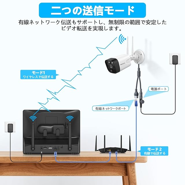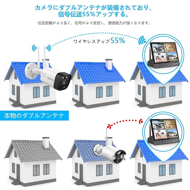 {WiFiを強化するためのデュアルアンテナ} ワイヤレス信号はこのシステムにとって非常に重要です。ワイヤレス信号が弱い場合、ビデオがぼやけたり、停止したり、消えたりするため、すべてのカメラを実際のデュアル アンテナに更新されています。ワイヤレス距離は約 55% 更新され、ビデオはさらに良くなり、滑らかでクリアになります。