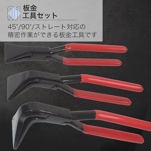 【板金工具セット】 45°/90°/ストレート対応の精密作業ができる板金工具です。アルミ板や鉄板を簡単に折り曲げられます。DIYや建設現場での作業に最適な使いやすさと正確性が特徴です。