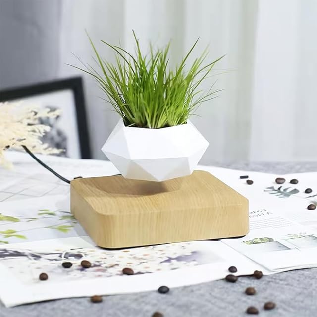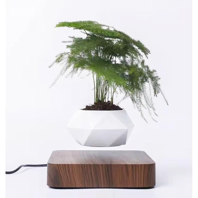 FGY 宙に浮く盆栽 プランター 観葉植物 磁気浮上 鉢植え 装飾 ウッド 木目 浮く インテリア (ブラウン)