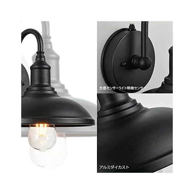 ALLUCK 光感センサーライト明暗センサー 玄関ライト ポーチライト 和風 屋外 防雨型照明器具 夜間自動点灯 ブラケットライト ウォールランプ 外灯おしゃれ マリンランプ レトロ風 ブラック 門柱灯 玄関照明 防犯ライト 廊下灯 ガーデンライト壁掛け照明 (電球1個サービス)