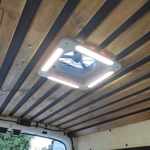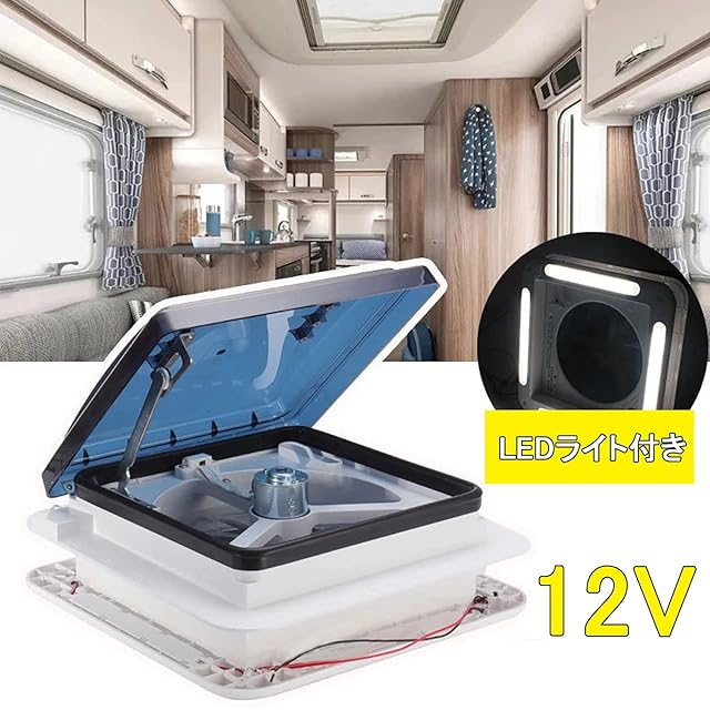 Iproods キャンピングカー 換気扇 ルーフベントファン 排気 換気 双方向空気交換 LEDライト付き (12V14インチ-1)