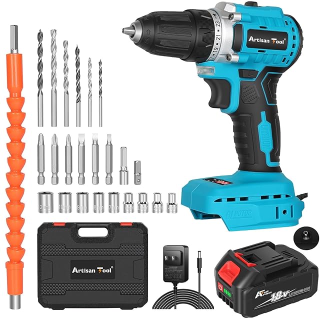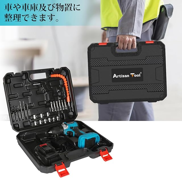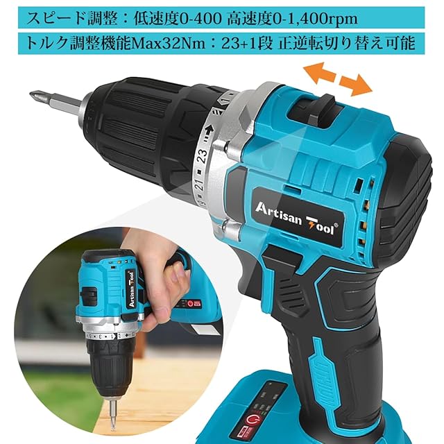 アルチザンツール ドリルドライバーセット 電動ドライバー小型軽量約850g 23+1段階トルク調整 最大45N・m 軽量 スピード調節機能 正逆転切替 LEDライト付き 家具の組み立て・手作りインテリアに ドライバー 電動 女性や初心者でも軽く小さく簡単に使える diy工具 3000mAh バッテリー付き 即使用可能フルセット