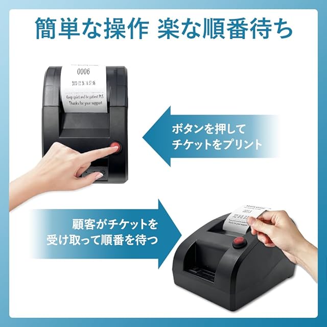 ※「用途」: この番号プリンターがあれば、順番待ちエリアでの顧客動線管理が改善されます。喫茶店、居酒屋、バー、レストランなどの飲食店や、診療所、美容院、理髪店などのサービス業に適しています。