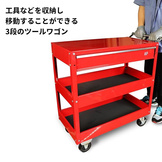 BIG RED ツールワゴン ツールカート キャビネット 工具カート 工具台車 3段 耐荷重135kg 工具収納 移動 運搬 作業 レッド