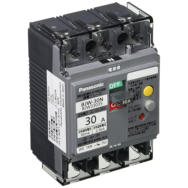パナソニック(Panasonic) 単3中性線欠相保護付漏電ブレーカ BJW-30N型 3P2E 30A 30mA BJW33035