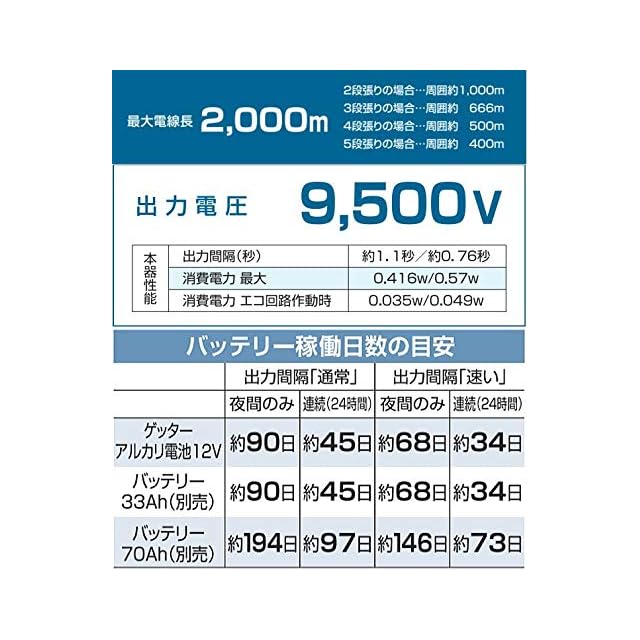 末松電子製作所の電気柵 クイック2000 [Qik-2000] 対象動物によって出力間隔切替可能な中型タイプ