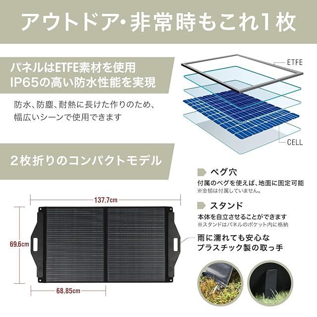 PowerArQ Solar ソーラーパネル 120W 折りたたみ式 2枚折り ETFE 単結晶 太陽光パネル ソーラーチャージャー MC4