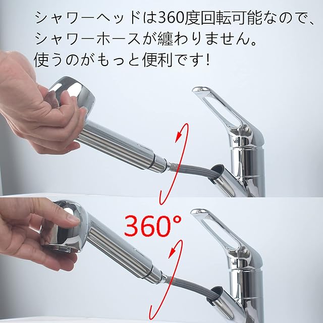 特徴:シングルレバー混合栓です。ホース引き出し可能なので(ホース引き出し長さ=最長80cm)、 使い方も自由自在です。