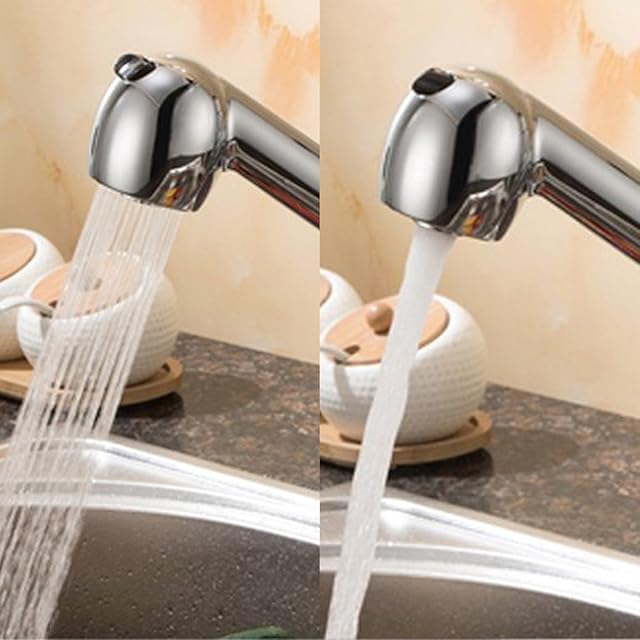 素材:キッチン混合栓の本体は真鍮で、ノズルはABS素材です。サテンメッキ工芸なので、防錆と耐久性が良いです。