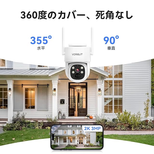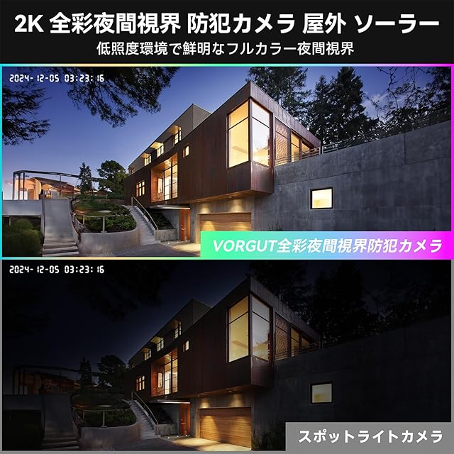 【2025年 全彩夜間撮影・5年保証】 VORGUT 防犯カメラ 屋外 ソーラー 低照度監視カメラ ワイヤレス 電源不要 工事不要 360°監視 人体検知 パンチルト 駐車場 車上荒らし 盗難・空き巣対策 介護対応 ネットワークカメラ