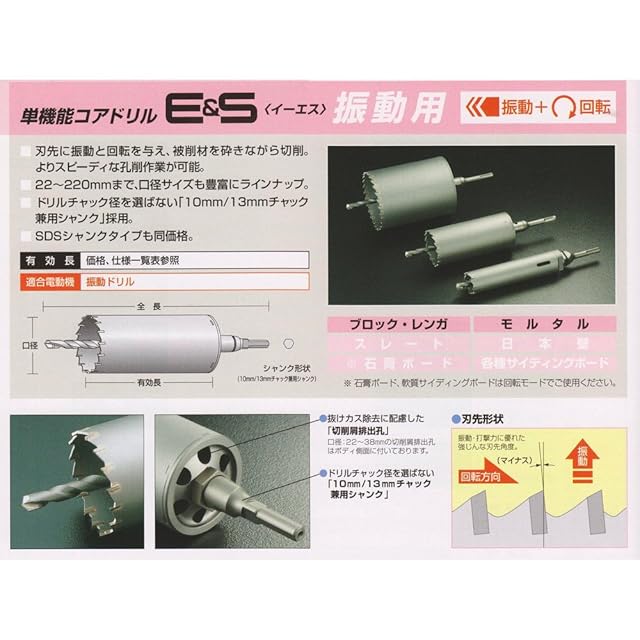 ユニカ(unika) ESコアドリル 振動用 SDSシャンク 70mm ES-V70SDS (金属・金工)