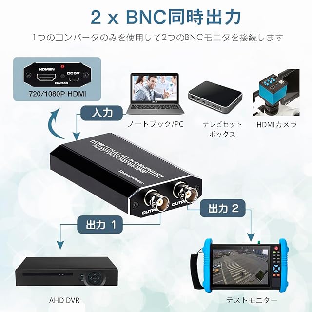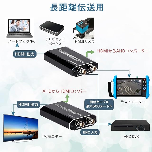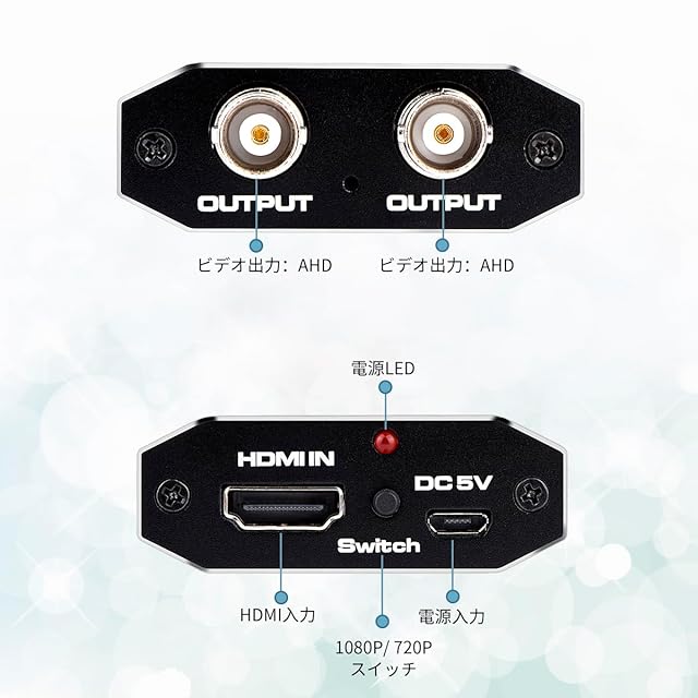 HDMI to AHD 変換アダプター HDMI AHD コンバーター AHDループアウト500M HD CCTV屋外家庭監視 IPカメラシステム AHD DVR NVR ビデオデッキ 対応