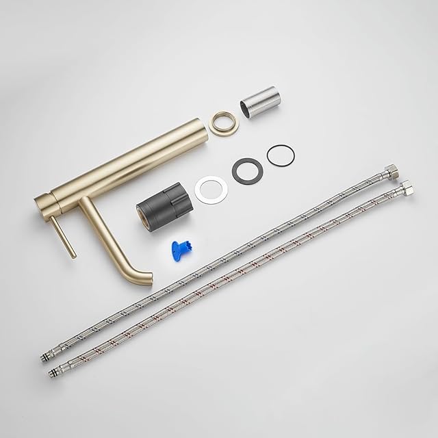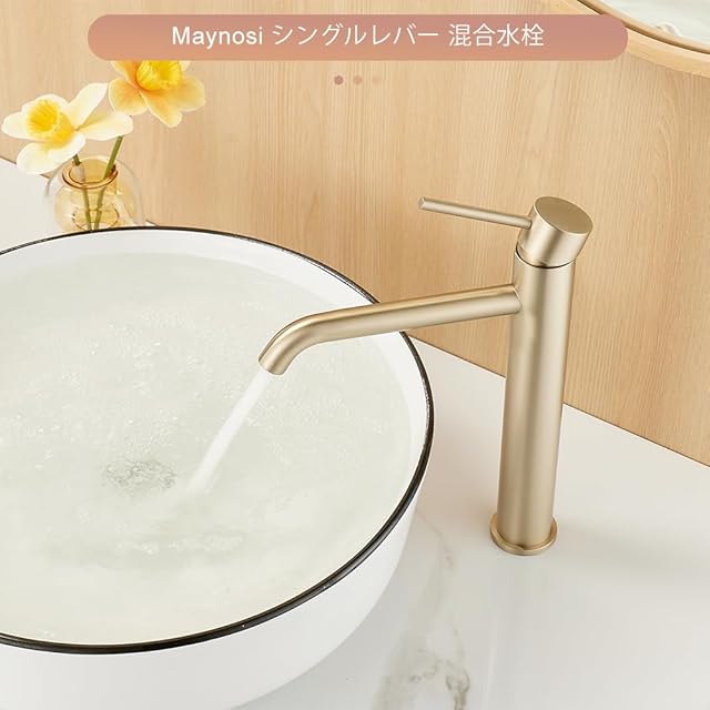 Maynosi 洗面用水栓 洗面台蛇口 シングルレバー 混合水栓 浴室混合栓 手洗いボウル用 高さ283mm 高台の洗面器に適しています シンプルなスタイル ステンレス製 取り付けホース付き ヘアラインゴールド