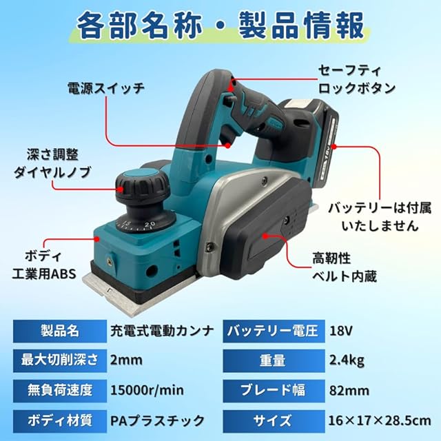 マキタ Makita 対応 コードレス カンナ 充電式 電気かんな 替刃式 研磨式 小型 14.4V 18V バッテリー 互換 家庭用 工具 ※ 充電器 バッテリー 別売り