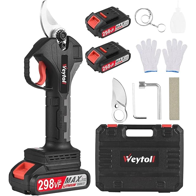 Weytoll 電動ハサミ 剪定はさみ 電動 切断直径30mm 21V 1.5Ah 2個大容量バッテリー ブラシレスモーター搭載 軽量 ポータブル電動剪定ばさみ 庭木 果樹用 削り器/電動剪定替刃/ツールボックス付き