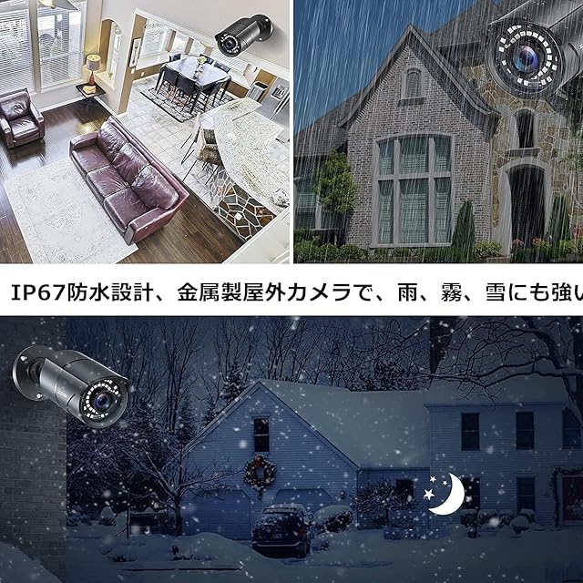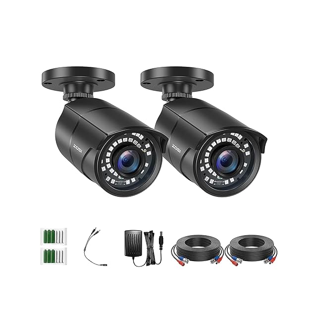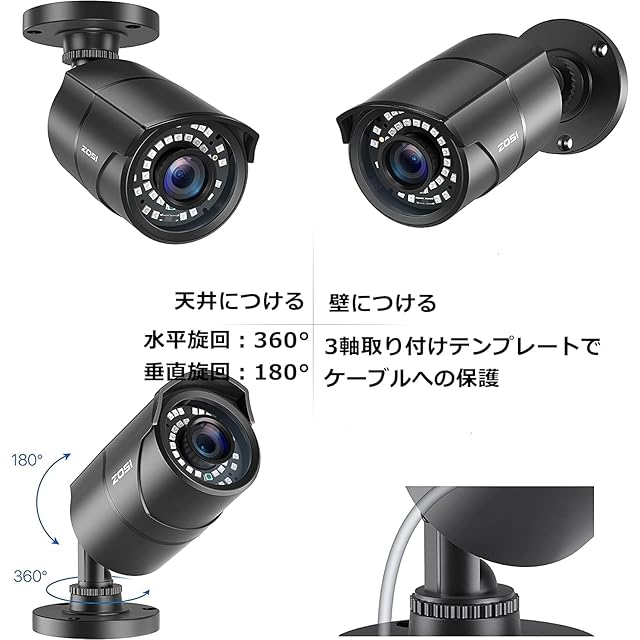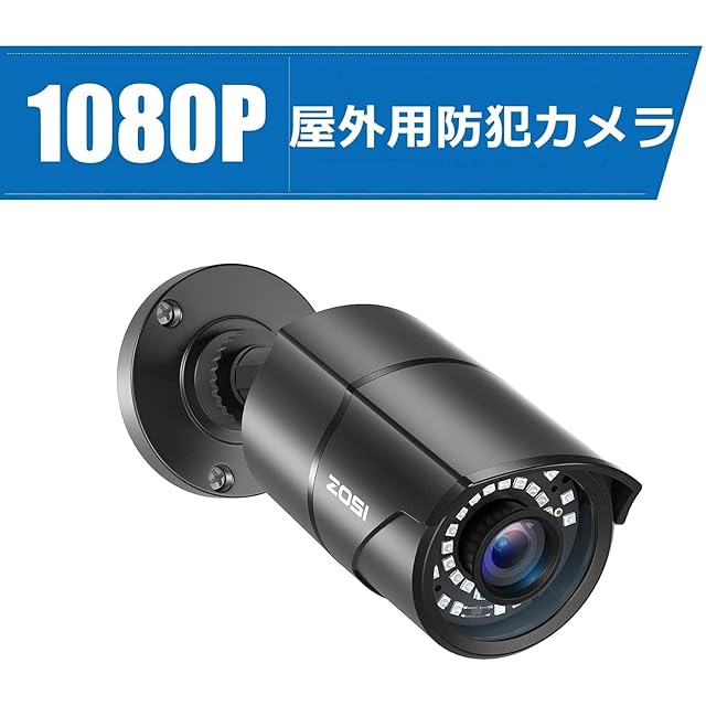 ZOSI 200万画素防犯カメラ監視カメラ2台セット フルハイビジョン 屋外防犯カメラ 赤外線搭載 3.6MM固定レンズ 暗視機能 IP67防水カメラ 金属製